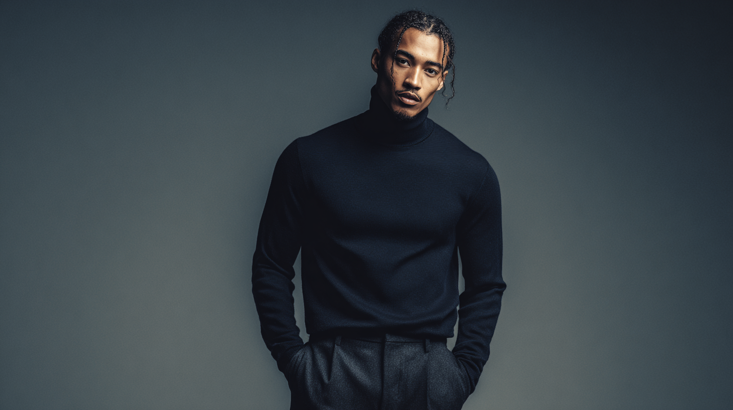 Evenings: Roll-neck with tailored trousers for modern elegance.